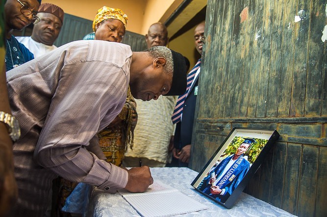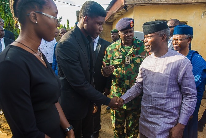 Following the heartbreaking news of a young corps member being a fatality during the Shi’tes and Police clash that rocked the Federal Capital Territory recently, Vice President, Yemi Osinbajo has paid a condolence visit to the bereaved parents of the corper.