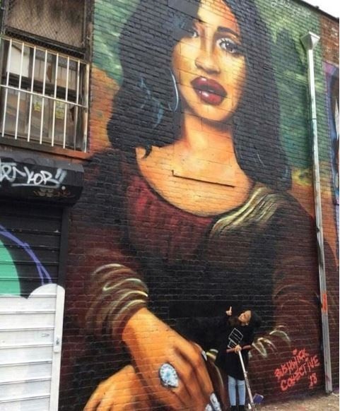 Artist, Jesse Jumanji recently unveiled this new painting of American rapper, Cardi B in Brooklyn but Nigerians can’t help but notice the striking resemblance it shares with Nollywood actress, Tonto Dikeh.