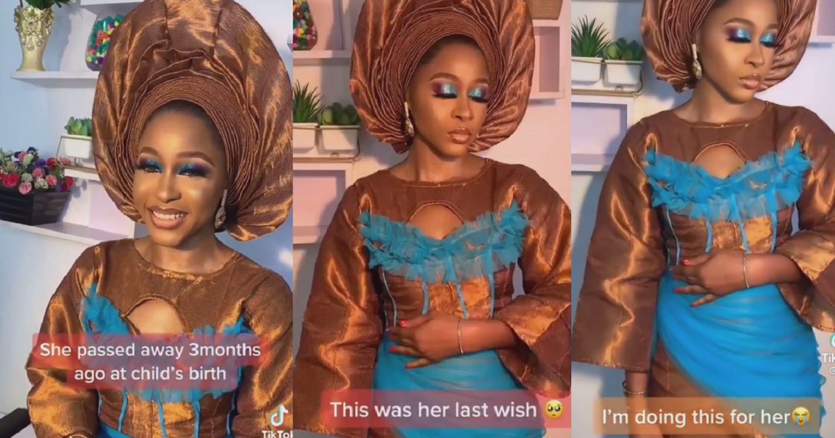 The lady in a video she shared on TikTok said she tied the knot with her late sister’s husband, although she barely knew him, to fulfill her sister’s last wish.
