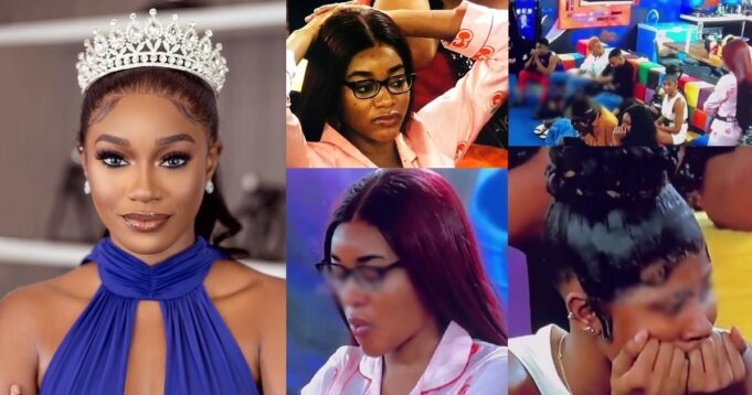 The 43rd Miss Nigeria, who had been issued a strike for exhibiting violent behaviour and attempting to fight with a fellow housemate, got a double strike on Sunday evening following her Saturday night fight with her love interest, Groovy.