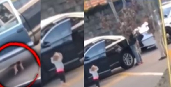 The little girl saw as her dad was being handcuffed and as if she felt the urge to intervene, she made her way of the car and while raising her hands in surrender, walked to one of the officers.