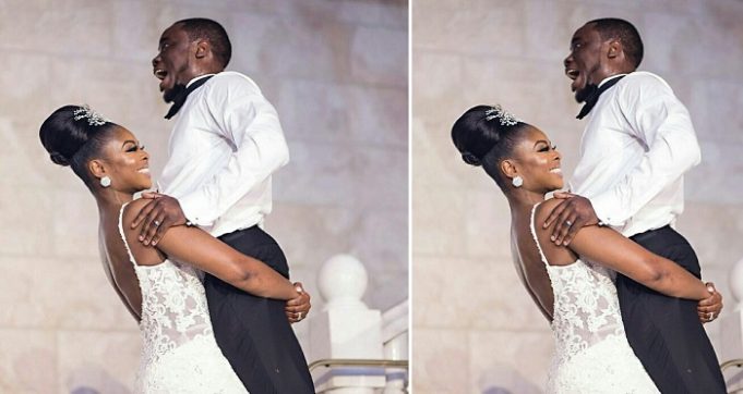 You can see the utmost surprise in the groom’s face as it looks as if his bride carries him effortlessly – she wears a bright smile as she lifts her man, waist to bosom.