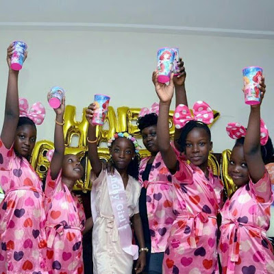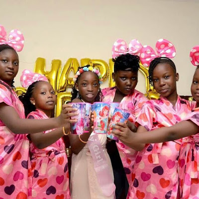 So 10-year-old Eniola had her birthday shower on her birthday and yeah well, it looked as fun as any form of “shower” would be – she clocked 10 and had her friends all turned up for her as they donned matching outfits.