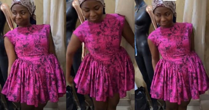After exchanging pleasantries with the woman, she tried hiding the dress with her facial expression, implying the fear of getting scolded by an African mum because of a revealing dress.
