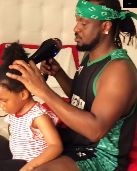Paul, former member of the now defunct “P-Square” group, took to his page to share a video of himself treating his daughter, Nadia’s hair while stating that he “deals with anything hair“.