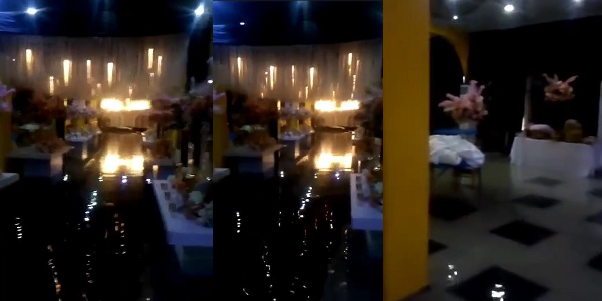 A viral video that made the rounds online showed the beautifully decorated hall, located along Refinery Road in Effurun, completely submerged in water.