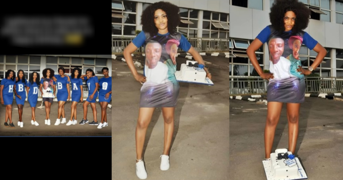 The video showcased the lady wearing a customized dress featuring pictures of herself and her ex-partner, while her friends wore customized dresses that spelled ‘Happy Birthday’.