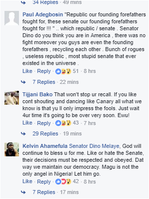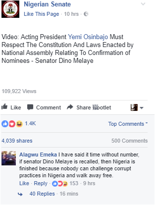 In the video posted on the Nigerian Senate page this morning on Facebook, various people have now reacted to Melaye’s submissions. Some condemned the senator while some other celebrated him for his ability to voice out.