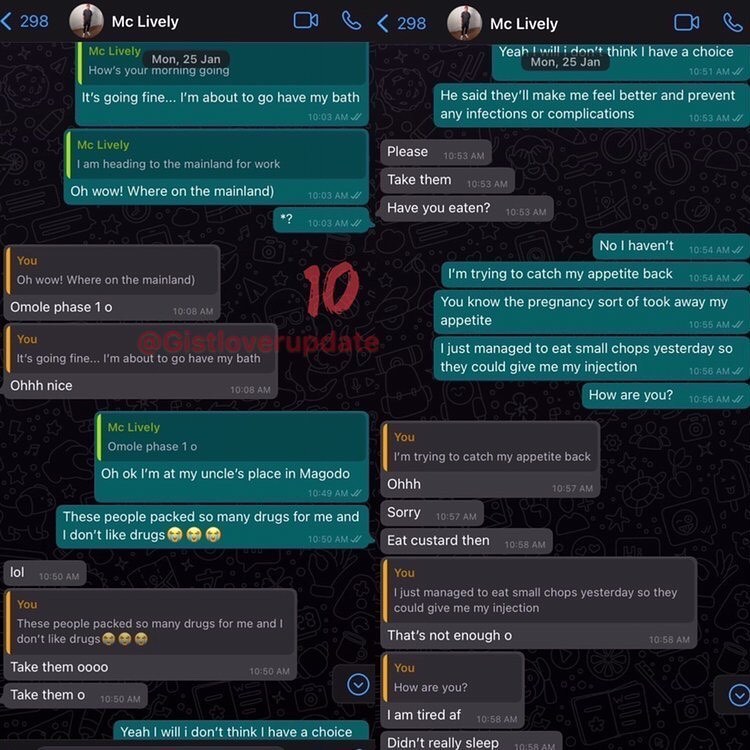 Read Below the Whatsapp conversations between Comedian MC Lively and his 21-year-old ex-girlfriend;