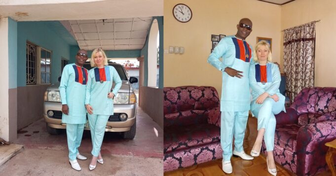 A white woman, Lana Svitlana, has taken to her social media page to celebrate and show off her Nigerian husband on their 26th wedding anniversary.