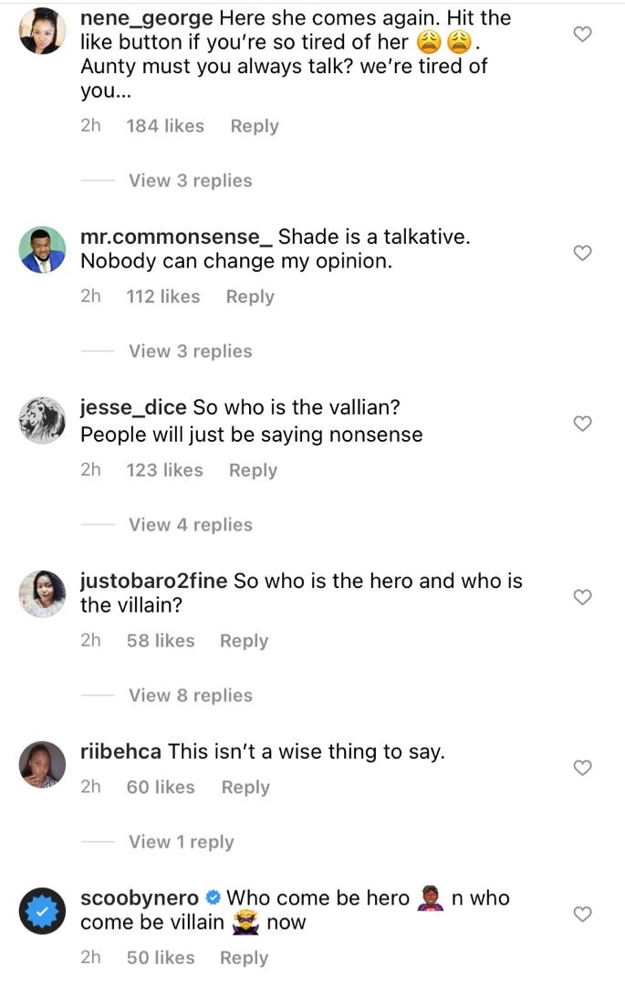 An Instagram user @posh9226 wrote, “So na who live violent life?… must she talk about everything they did not involve her in?”