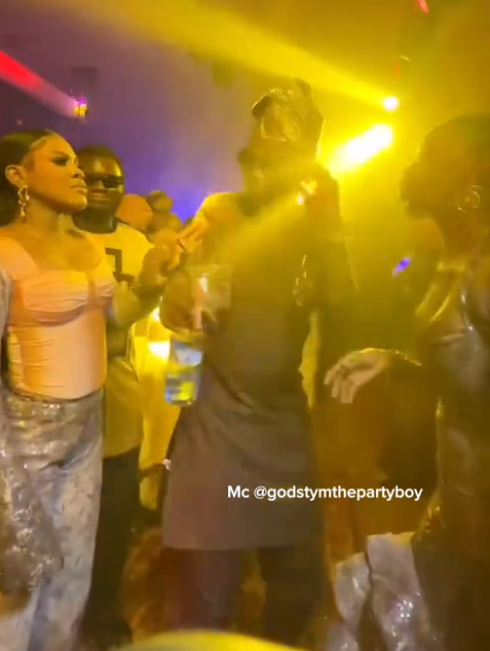 A Nigerian man faced embarrassment after interrupting a ladies’ dance video shoot at an event, awkwardly inserting himself between them.