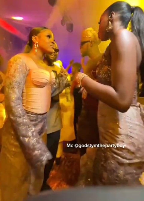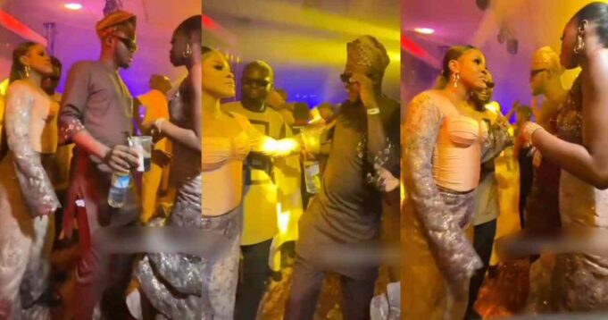 In the video shared online, two elegantly attired female guests were doing a choreographed routine when the man abruptly broke the dance by inserting himself in between them to dance with one of the ladies.