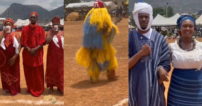 In a later clip, she revealed a video of her boyfriend performing as a masquerade on the floor while being thrashed by an unidentified individual, to represent a deity and entertain the audience.