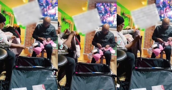 A video showing a wife joyfully helping her husband pack clothes and underwear for his other wife has gone viral after it was shared online.