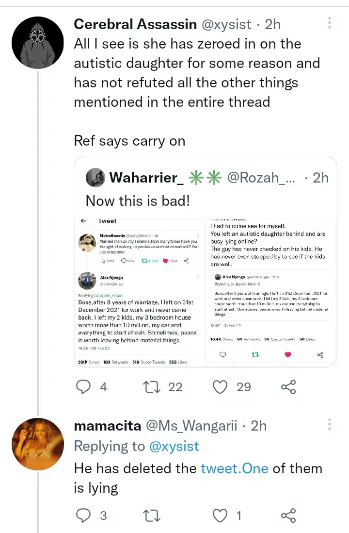 “I was busy at work then a mutual triend sent me this tweet. I had to come see for myself. You left an autistic daughter behind and are busy lying online? The guy has never checked on his kids. He has never even stopped by to see if the kids are well,” she wrote.