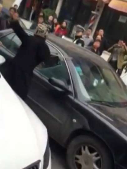 The incident which already brought the traffic to a standstill was brought under control by the police, and both the woman and others involved were arrested questioning.