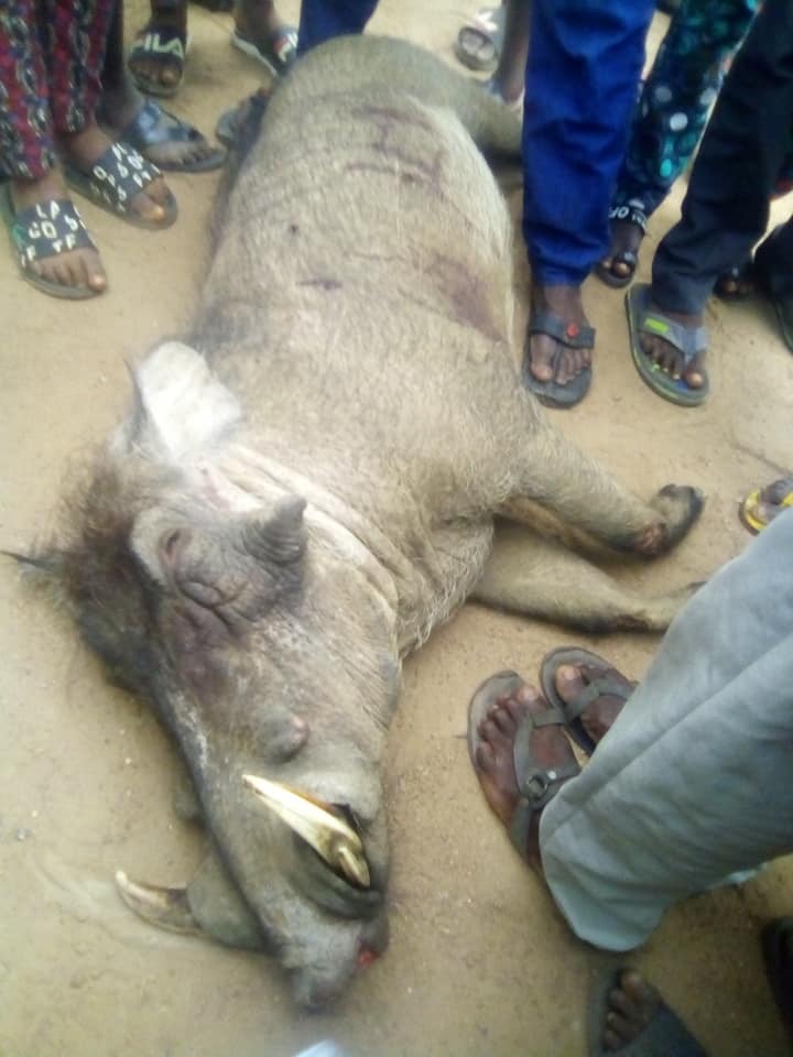 A wild boar was reportedly killed by some group of hunters on Sunday, 7th April, 2019.