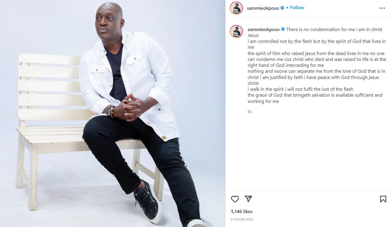 He revealed he would be stepping down from ministry until he gains fell restoration. Following the heat that emanated from the affair, Sammie Okposo went on a social media hiatus and deactivated all his accounts.