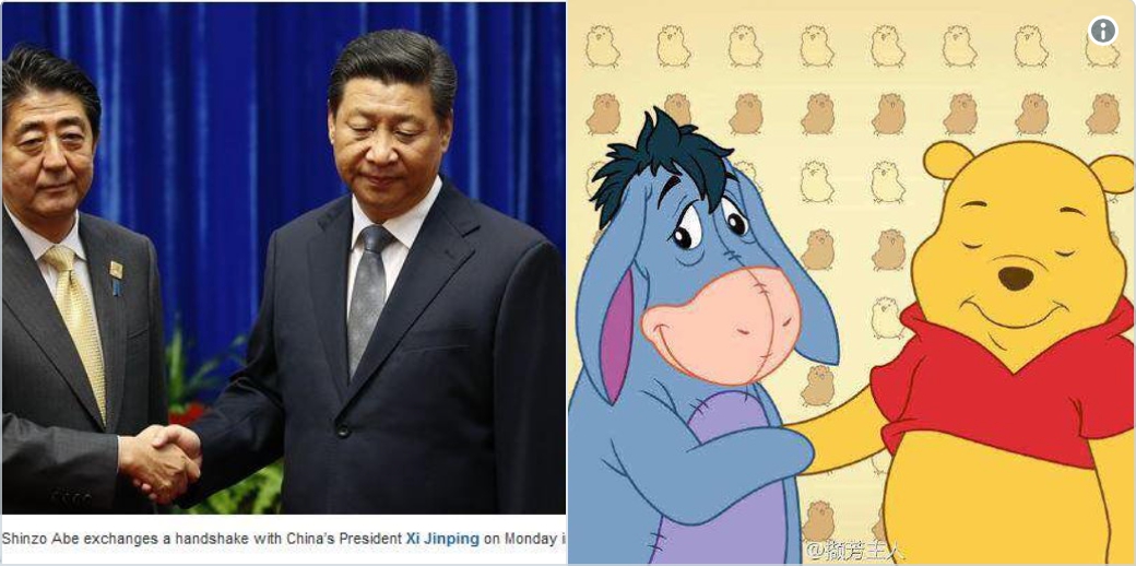 Prime Minister Shinzo Abe was shared along with a picture of Pooh with Eeyore.