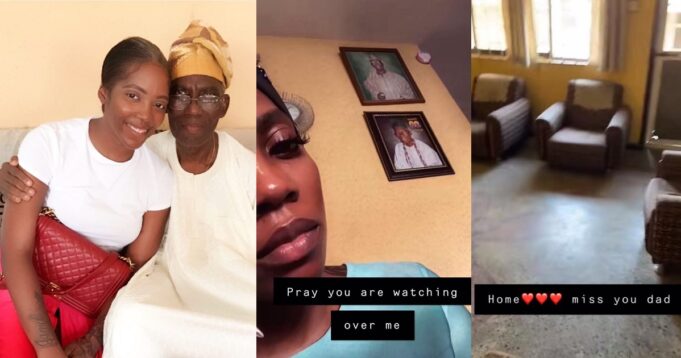 Days after the announcing the death of her father, Tiwa Savage shared video of her father’s house as she inadvertently showed her fans the house once lived by her beloved father.