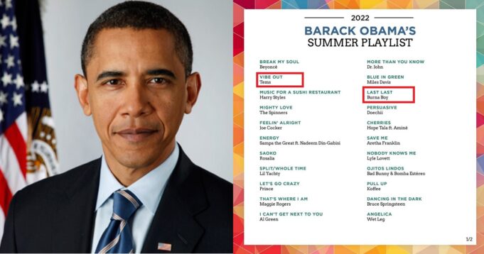 Former US President, Barack Obama has shared his summer playlist for the year 2022 and popular Nigerian music superstars, Wizkid and Davido, were noticeably absent.