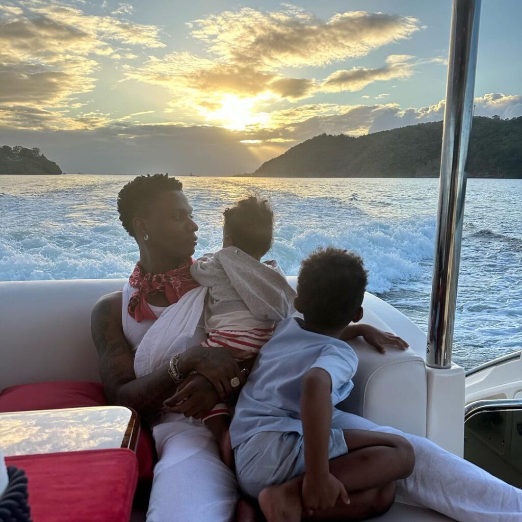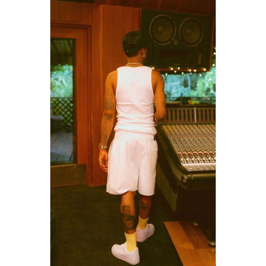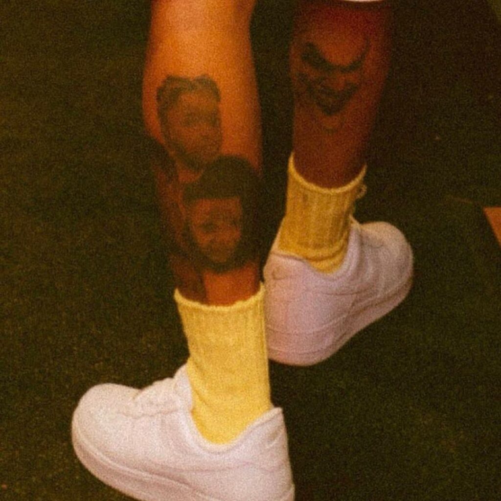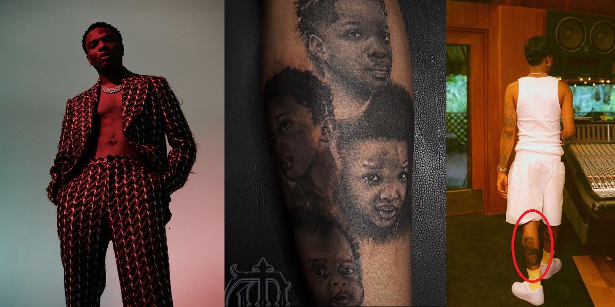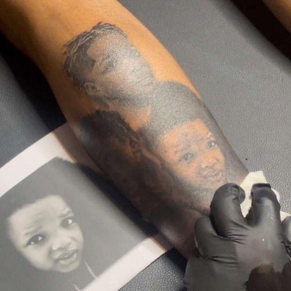 The father of four boys recently tattooed the faces of his children, Boluwatife, Ayo, Zion and his newborn son with his partner, Jada Pollock, on the back of his leg.