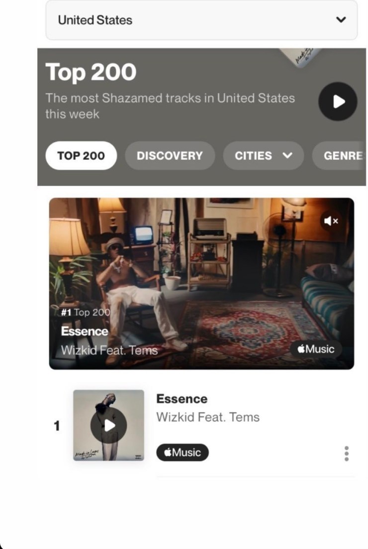 In a new report, Nigerian singing sensation, Wizkid‘s summer jam “Essence” which features songstress, Tems, has emerged as the “most Shazamed” song in the United States.