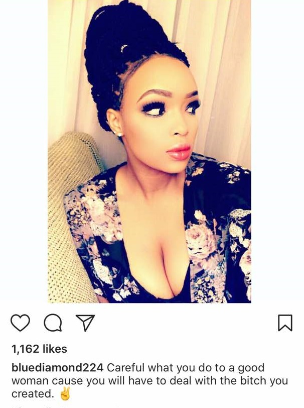 Binta threw shade via her Isntagram, when she wrote; “Careful what you do to a good woman cause you will have to deal with the B*tch you created”.