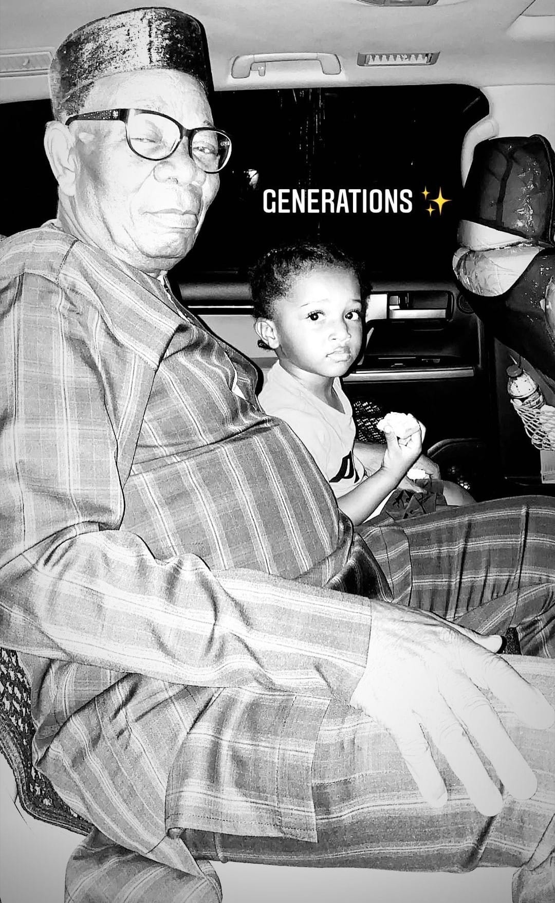 In a new photo that surfaced online, the youngster is seen with his grandfather, Wizkid’s father, Alhaji Muniru Olatunji Balogun which is possibly the first time they’re meeting.