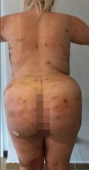 “But now I am left with a lumpy bottom and super wide hips as the fat which was injected for the BBL has leaked into my thighs and hips.