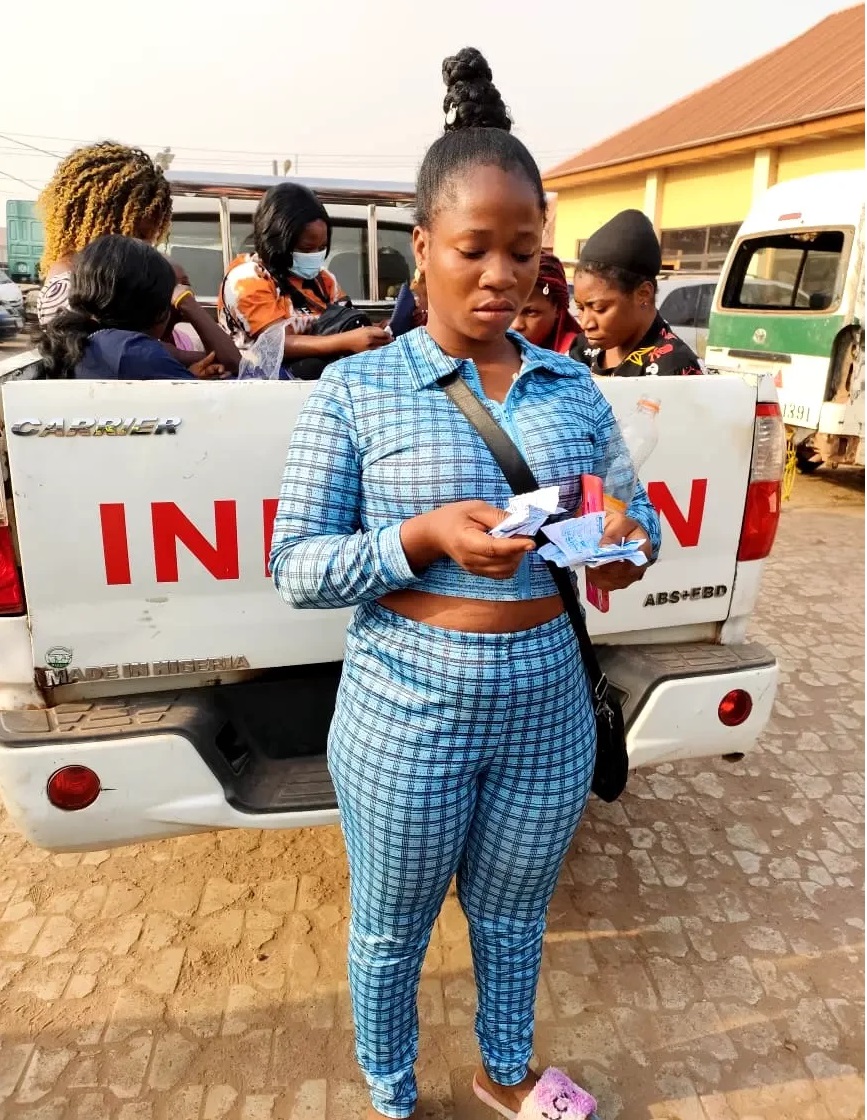 Mercy was arrested in the early hours of Friday, January 7, by the Makurdi Zonal Command of the National Agency for the Prohibition of Trafficking in Person, NAPTIP, after they received a call from a concerned citizen who saw her with seven ladies at a popular motor park in the state.