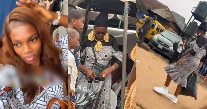 In a video shared, the guest, an elderly woman, stood out in an Ankara outfit paired with unusually large jewelry and sneakers, a combination that caught her attention. The bold styling contrasted with the typically reserved dress sense often seen at such events.