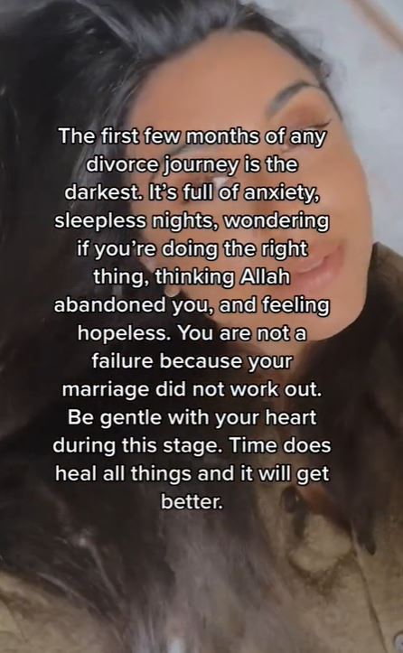 In one of her videos, she spoke about the stigma divorced women face in her culture and how her family members tried to force her to stay in the marriage.