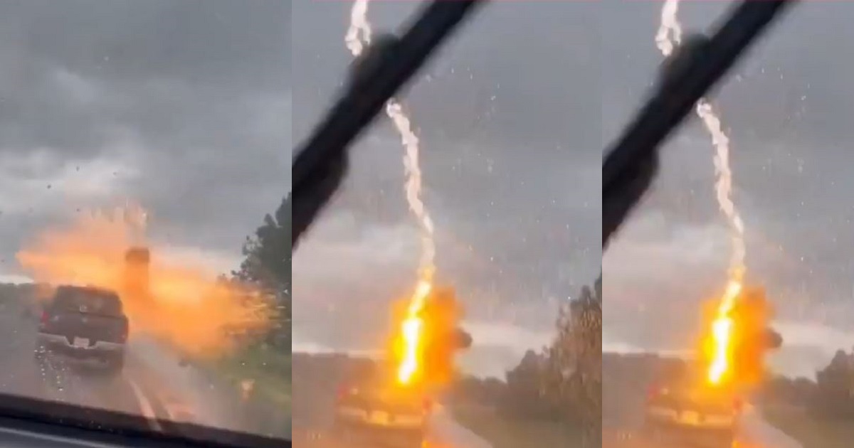 Thankfully, no one in the vehicle was injured, but the truck was “completely fried” by the lightning strike.