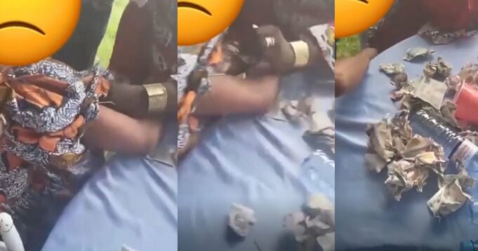 The woman had pretended to help the celebrants pick their money, but she was secretly stashing the funds under her sleeve.