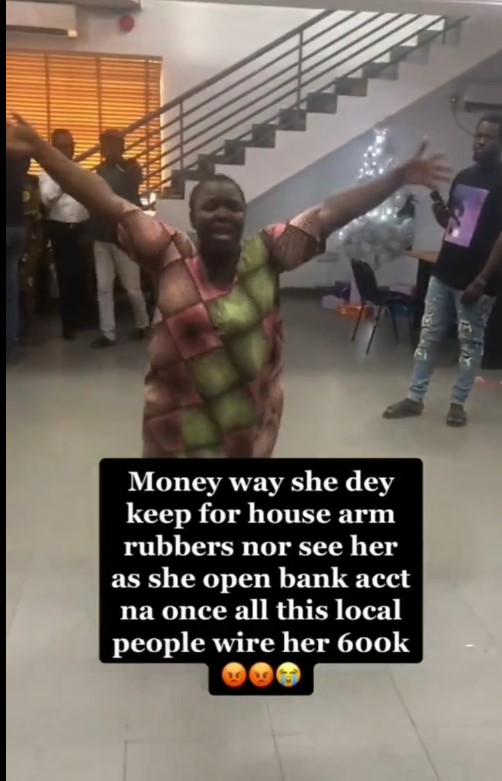 The aggrieved woman, who was prancing barefoot in the banking hall, is seen crying and demanding for her money. However, none of the bank staff attempted to console or attend to her.