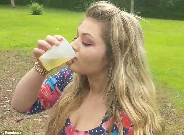 ‘Until I first drank my dog’s pee, I was depressed, I was sad, and I had bad acne,’ the woman says after finishing the cup.
