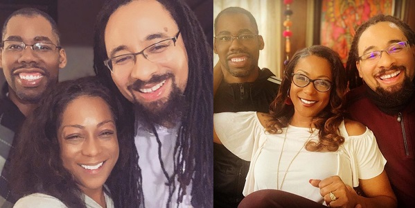 “Poly girls have all the fun!!! Here is me and my two life partners. One is a body love WC™️ one is a mind love CC™️ – They are both 6’3. They both have beards. We all wear glasses One is a Southern gent, the other is a shrewd northerner. We live together and we get along really well. I am raising both their sons – our oldest two are away at college!”said Kenya.