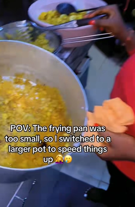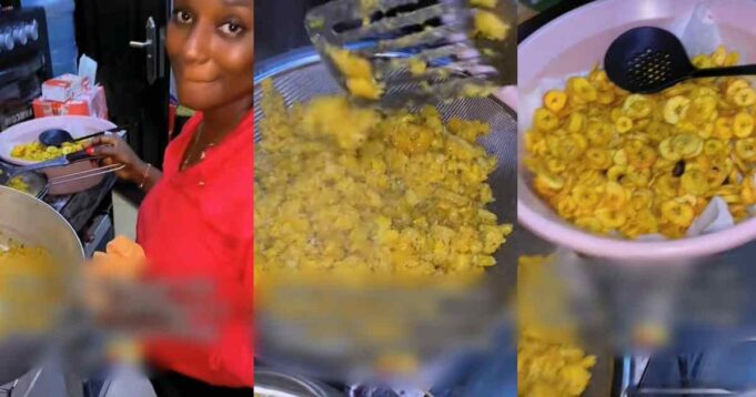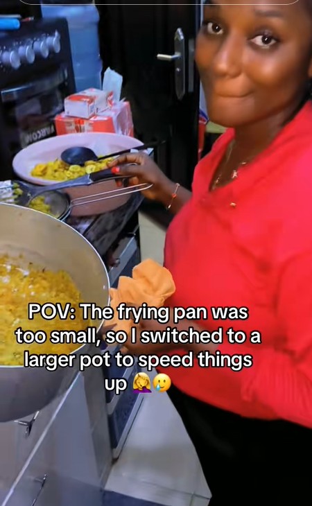 A woman was left with regret after she decided to adopt an unconventional method of frying her plantain chips in a larger pot instead of a frying pan.
