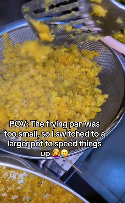 To speed things up, she switched to using a larger pot, which later turned her chips into mashed potatoes.