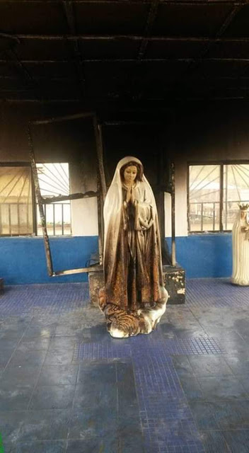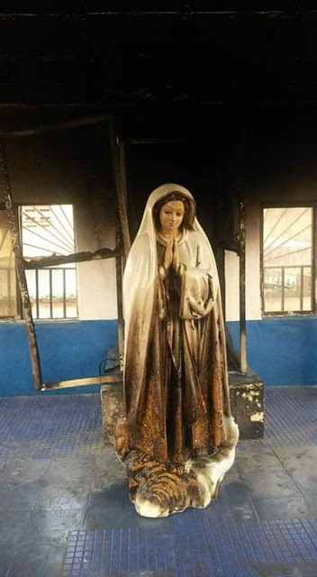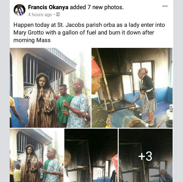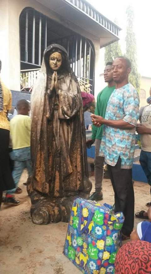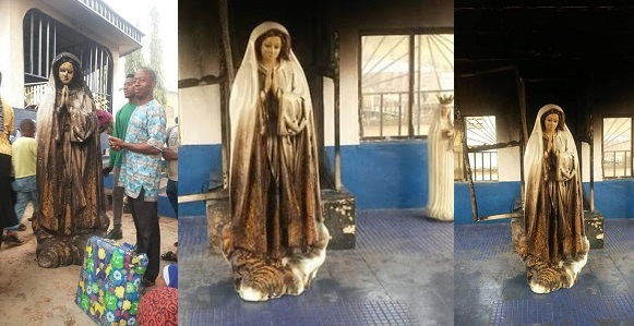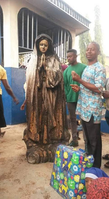 An unidentifed woman set the statue of Virgin Mary ablaze at a Catholic church in Enugu state this morning.