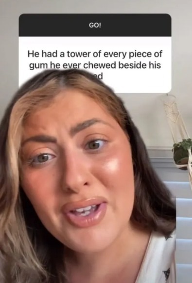 According to her, she found out that her date piled up every chewing gum he had ever eaten into a mountain on his bedside table.