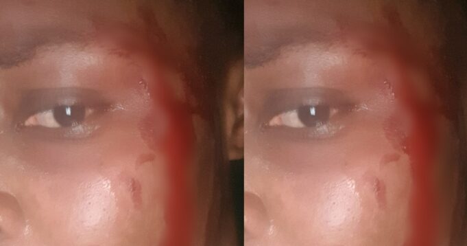 She refused to part with her purse and phone so they injured her on the face with a machete.