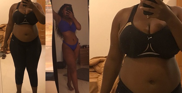 The said lady revealed on Twitter that she went from a weight of over 200lbs to 169lbs in that time period.