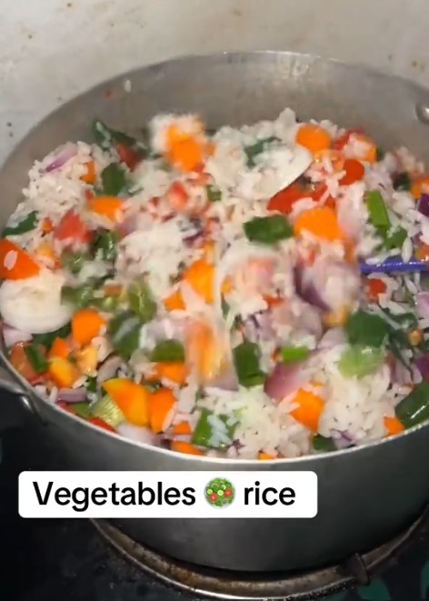 A woman has stirred reactions online after showing off her homemade vegetable rice, but it wasn’t your regular serving.