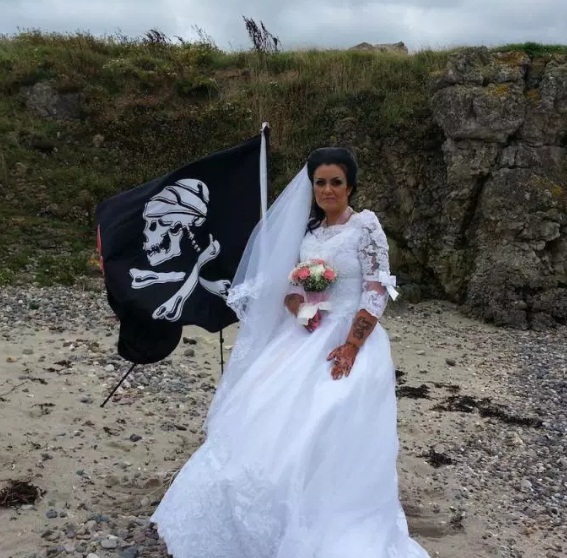 The wedding between Amanda and Jack, who was purportedly executed for thieving on the high seas in the 1700s, held earlier this year on board a boat in international waters off the Irish coast. It was conducted by a Shaman priest.