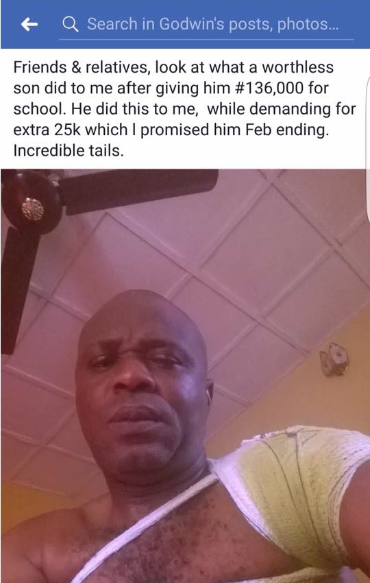 A man has shared on Facebook how his son, he tags as worthless beat him up, following a disagreement over money for his school and that of his younger sister.
