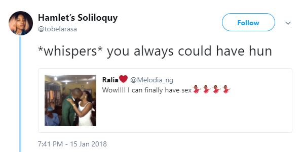 An excited Nigerian bride has taken to social media to gush about how she can’t wait to have sex with her husband, after officially tying the knot with him.