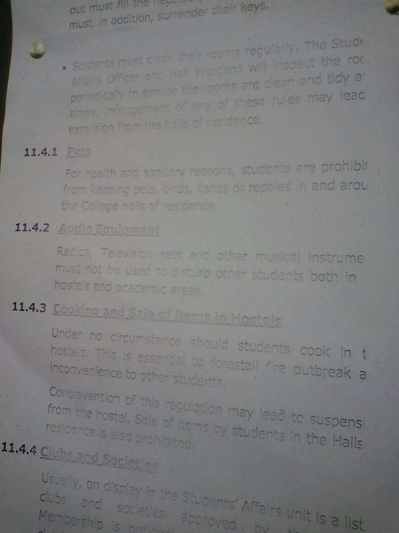 Under no circumstance should students cook in the hostels.This is essential to forestall fire outbreak and incovenience to other students